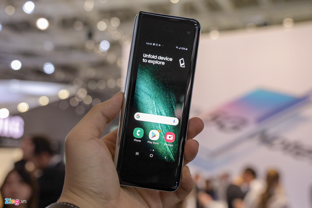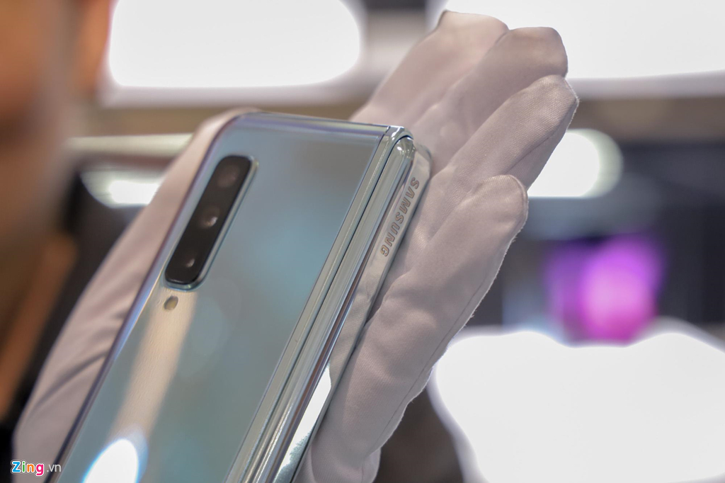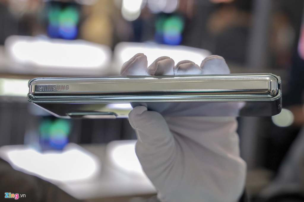 Cầm trên tay khi đang gập lại, Galaxy Fold cho cảm giác như một chiếc điện thoại dạng thanh trước kia, với kiểu dáng rất dài và thân máy khá dày. Máy trở nên gọn gàng, dễ cầm hơn phần lớn smartphone hiện nay khi gập lại.