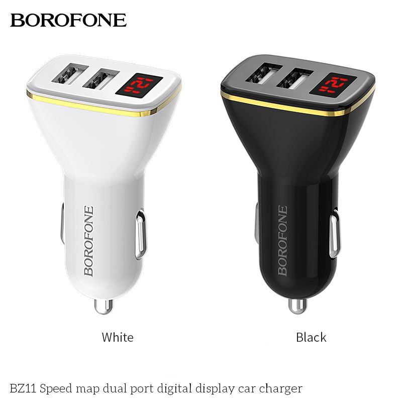 Cóc Sạc Xe Ô Tô Borofone BZ11 LCD 2 Cổng USB